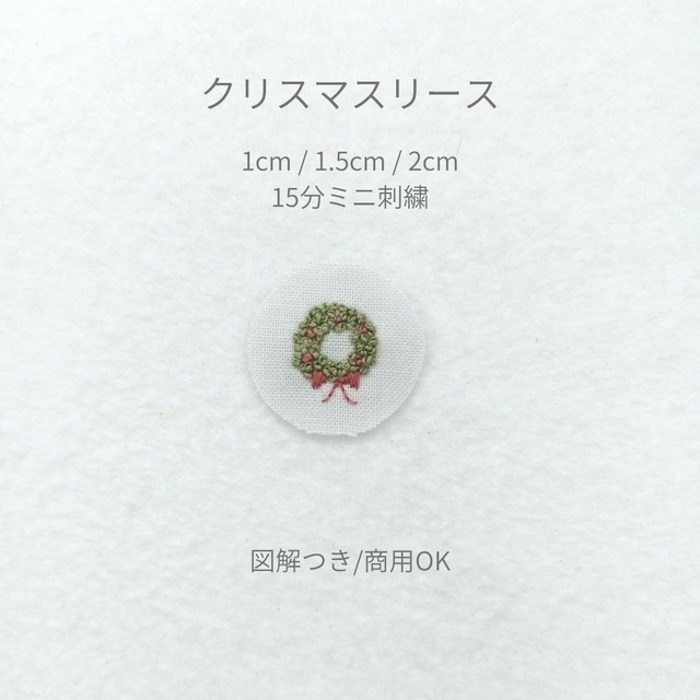 【刺繍図案PDF】1〜2cmで楽しむクリスマスリース図案(3サイズ)