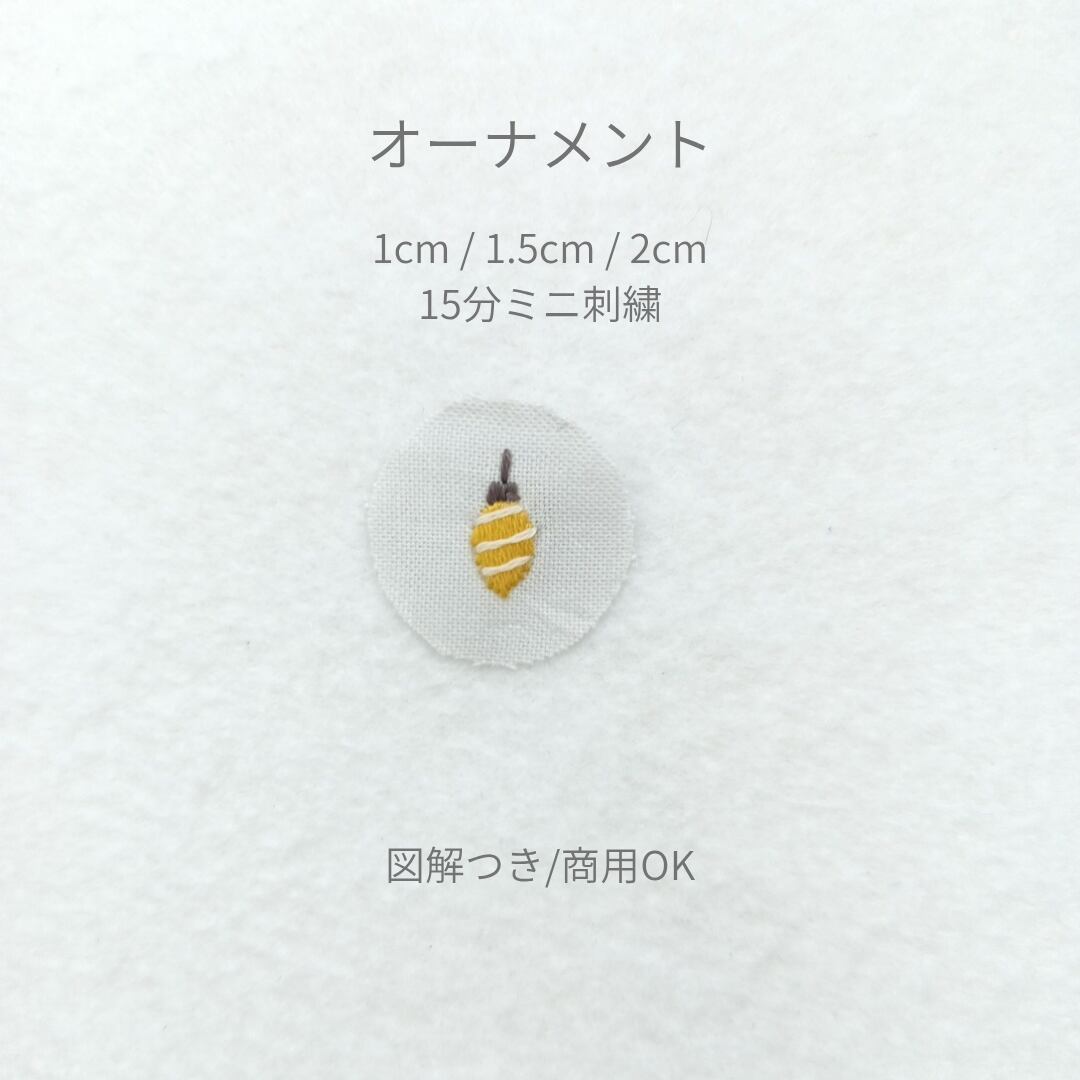 1cm・1.5cm・2cmの3サイズで楽しめる、オーナメントのミニ刺繍図案です。