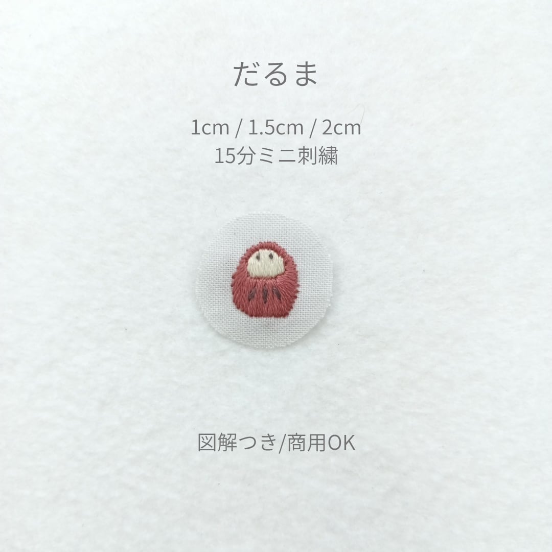 1cm・1.5cm・2cmの3サイズで楽しめる、だるまのミニ刺繍図案です。