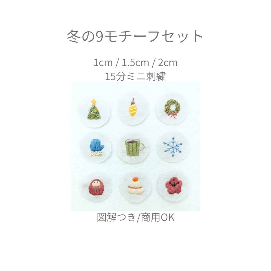 ・9モチーフ × 3サイズ(1cm/1.5cm/2cm)の図案