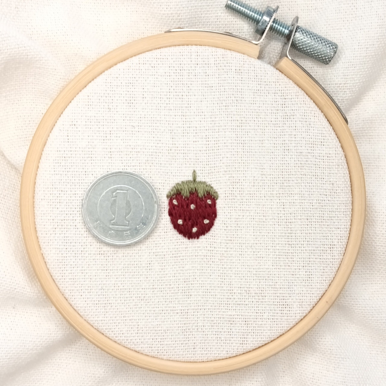 1cm・1.5cm・2cmの3サイズで楽しめる、いちごのミニ刺繍図案です。