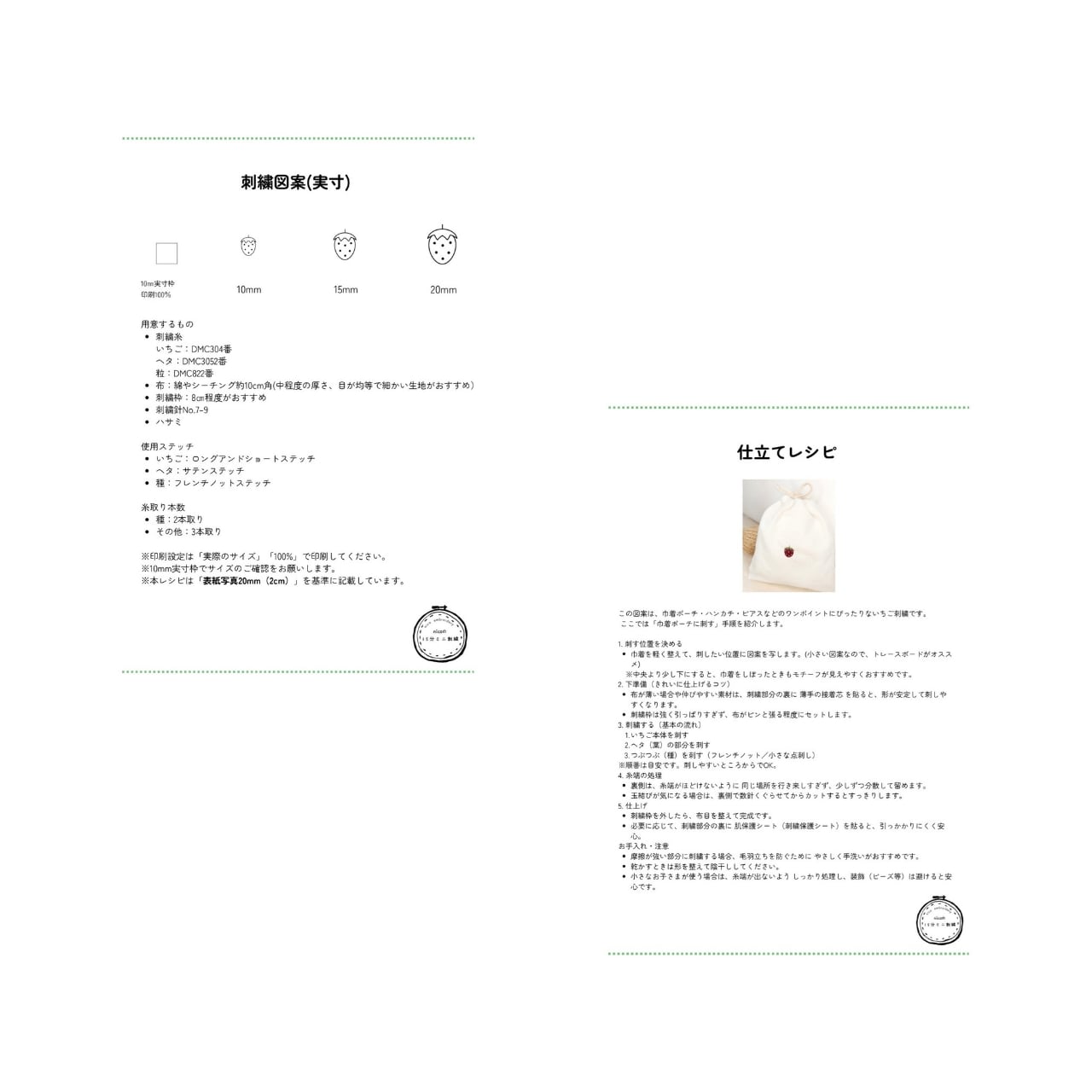 ・仕立てミニレシピ(巾着ポーチのワンポイント例つき)